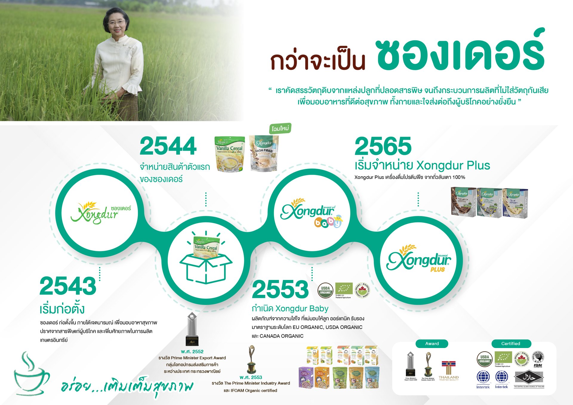 “ผลิตภัณฑ์ธัญพืชเกษตรอินทรีย์ ไร้สารพิษ คัดสรรเพื่อเติมเต็มสุขภาพ ในซองเดียว” (ซองเดียว-ซองเดอร์)